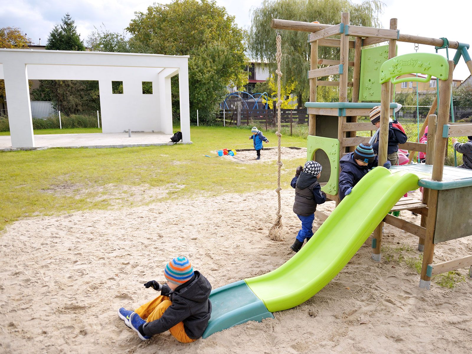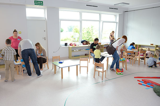 Sam budynek został specjalnie zaprojektowany jako przedszkole z uwzględnieniem wymagań metody Montessori.